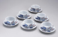- Set of cups, saucers and plates, character “Hana (flower)”, underglaze blue and overglaze red