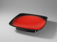 Twin bowl with a handle, "Futeki (aeolian pipe)", zebrawood
