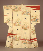 - Kimono, autumn grass design, stencil dyeing on crepe silk