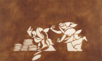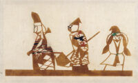 - Horaku-wari (scenes of Mibu kyogen comedy), stencil dyeing on paper