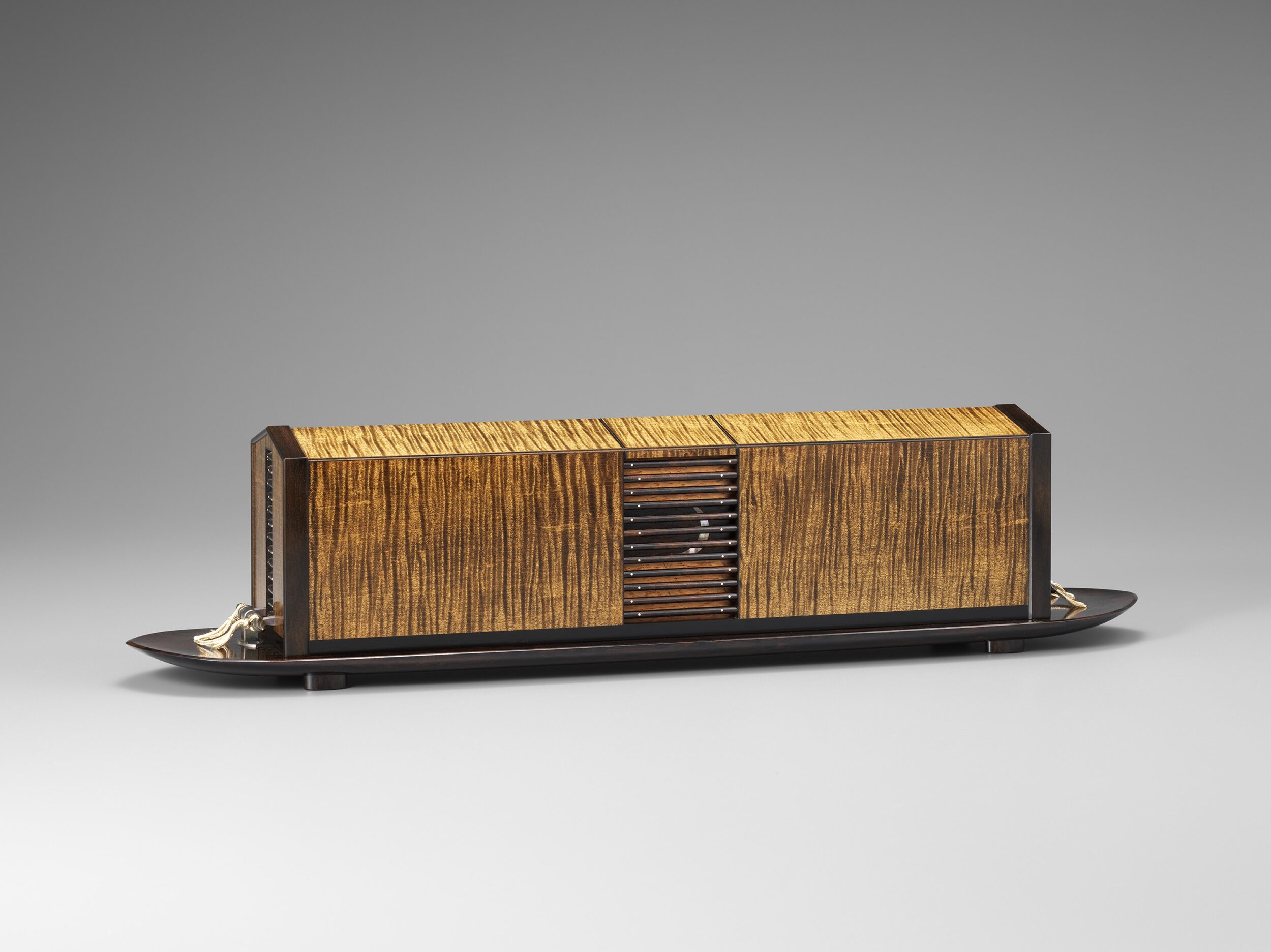 私たちの生活に欠かすことの出来ない「水」は、決まった形も色もありません。それでも水は古来より海や川を始め様々な形や色で描かれ、工芸作品においても多くの作家に着想を与え、様々な形や色、技で表現されてきました。例えば蒔絵で描かれた波紋や、急流を思わせる竹の編み方、多数の色糸で織り上げた水辺の景色…そのほかにも様々な形や色、技で表現されています。とらえどころのないものだからこそ、作家の観察眼によって個性が表れる水の表現をお楽しみください。