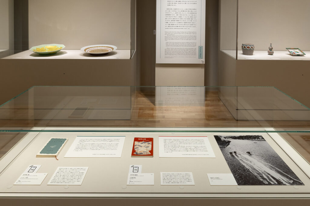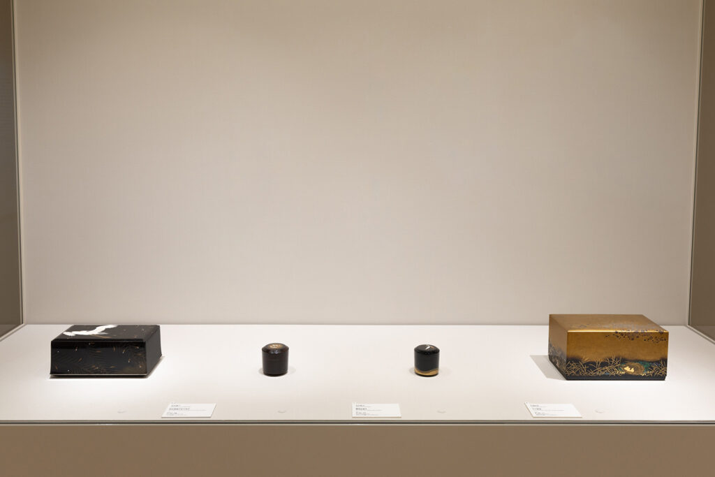1・2章を通して、最も多く展示されているのは漆芸による作品である。ウルシノキから採取した樹液である漆は、特定の温湿度下で化学反応が進むことにより硬化する。それ故、漆芸技術は気候と密接に関わり、地域を異にすると制作の勝手が変わる。例えば、石川県と東京都で、同時期に同じ用途で同じ調合の漆を用いても上手くはいかない。一括りに漆芸技術といっても、各地域で長年伝承されてきた技術は、その土地の気候に特化し、その環境がもたらす素材や道具を生かしながらそれぞれに発展してきたのである。これは漆芸に限ったことではない。
