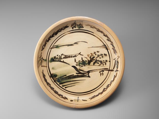 鉄描銅彩大和風景模様大飾皿