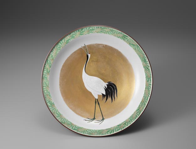 色絵金彩鶴文飾皿
