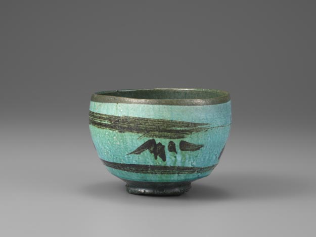 淡緑釉笹文茶碗