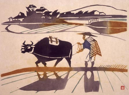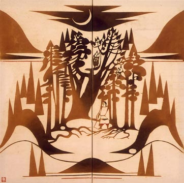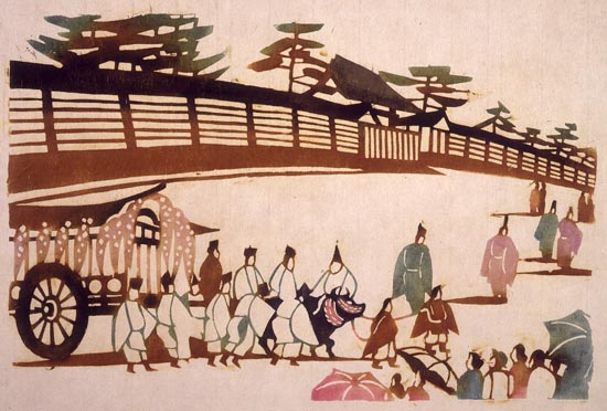 紙本型絵染屏風平家物語 発端 栄華 浮生