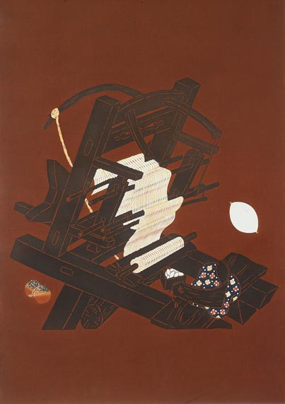 木綿地型絵染壁掛 織機