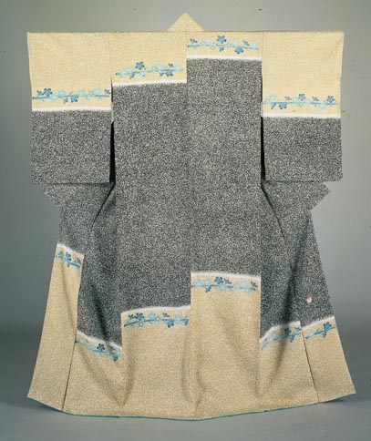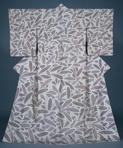 縮緬地友禅笹文着物 残雪
