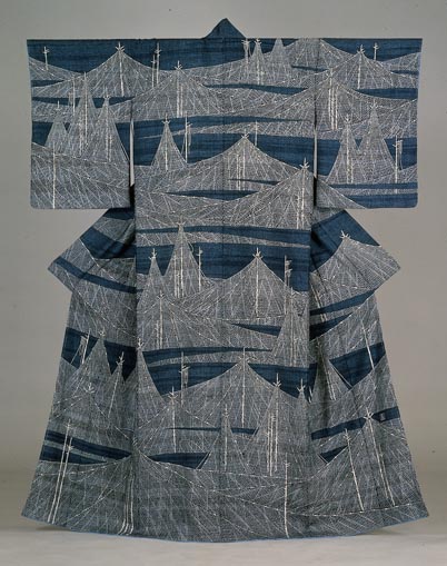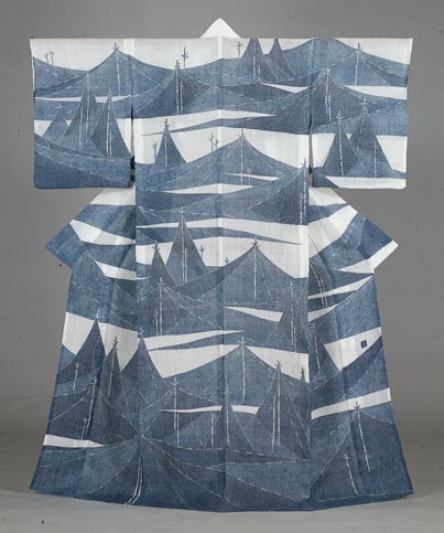麻地友禅着物 朝凪