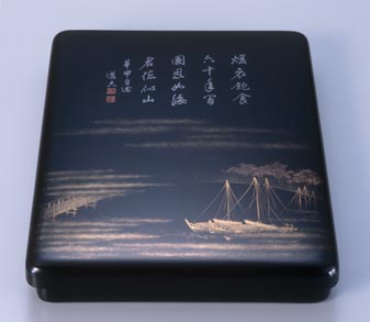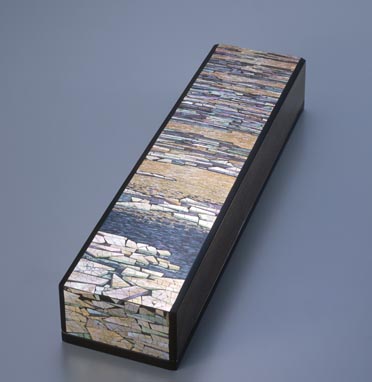 彩切貝蒔絵短冊硯箱 氷海の朝