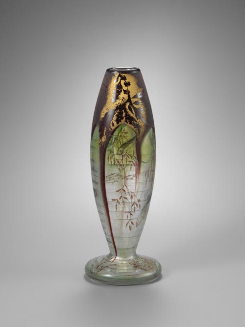 風雨樹林文円筒形花瓶