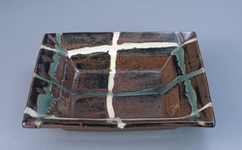 柿釉格子掛盛皿