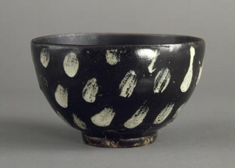 黒釉白斑文茶碗 春雪