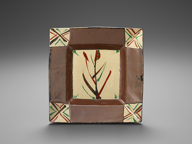柿釉赤絵角皿