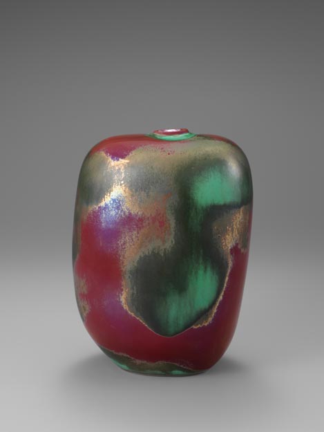 緑釉窯変扁壺