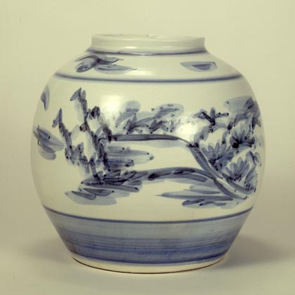 染付祖師ヶ谷風景飾壺