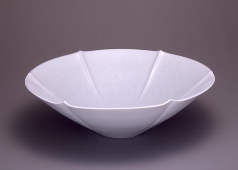 白磁牡丹唐草文彫鉢