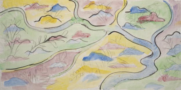 横浜市港北公会堂ホール緞帳デザイン案 「縄文集落址」