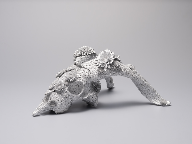 花鋳込軽銀香合 空華