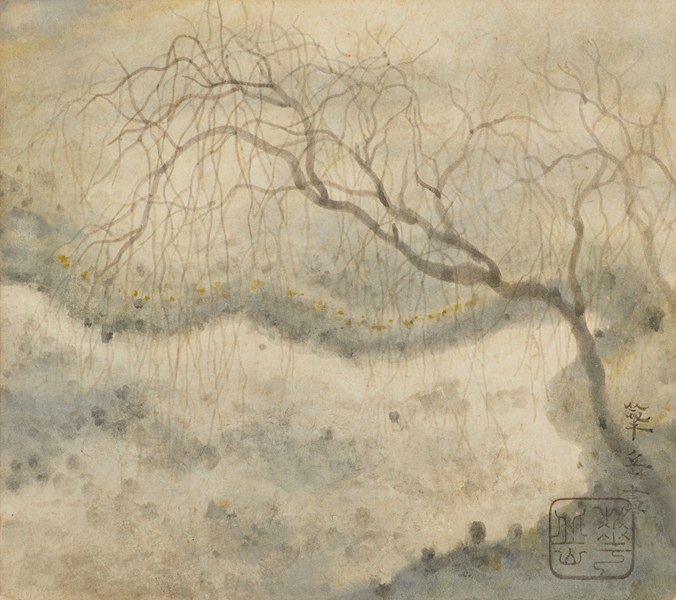 都市を描いた版画で知られる織田も、先達の影響を受けて初期には水彩画を手掛けています。東京各所の自然風景を中心に取り上げつつも、《高田の馬場附近》などの作品からはその後の版画にも繋がる都市風景への関心が垣間見えます。