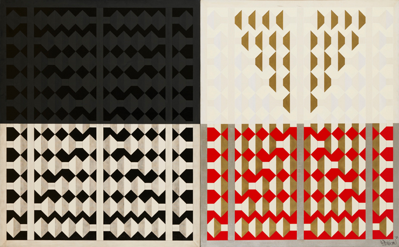 この時期、イメージを表現するという従来の絵画の枠組みを問い直すように、同一パターンの反復で画面全体を構成する作品が登場しました。システマティックな反復が無機質な印象をもたらす一方で、そこに生じるわずかなずれや差異に目を凝らしてみると、反復的な行為を重ねる作家の身体性が浮かび上がってきます。