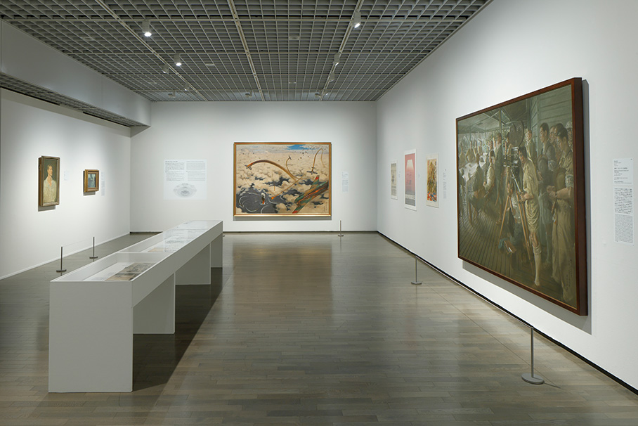 戦後80年の節目に企画されたこの展覧会は、戦争美術コレクションを軸に、写真や文学を交えて作品やジャンルを響き合わせ、戦争の記憶を多声的に紡ぐ壮大な試みである。7月15日の開幕以来、口コミやSNSで評判が広がった。筆者が訪れた日も、平日とは思えぬ長蛇の列が開館前から伸び、入口のバナー前では、カメラを構える来館者の姿も目立った。