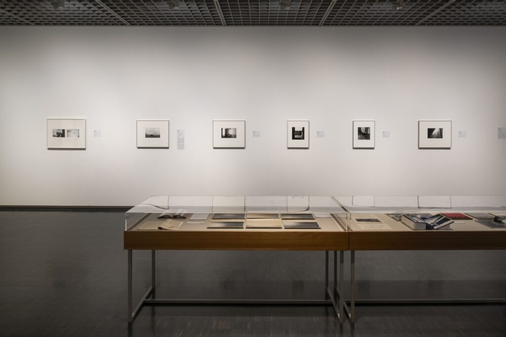 展覧会は、初期のインスタレーションに始まり、代表作であるフェルトにオイルの染みを残した《二つのしみ》(1972年)へと続く。さらに榎倉自身の写真作品に加え、彼に写真作品をつくるうえで影響を与えた中平卓馬の写真も紹介されている。政治的にも感情的にも「ホット」とも言える中平との併置は画期的である。中平の荒々しい白黒写真と、榎倉の静謐な写真とを見比べると、一見すると水と油のように思える。しかし榎倉もまた中平が好んで撮影した、水に濡れた路面を撮っていることに気づくべきだろう。《P.W.-No 50 予兆—床・水》(1974年)では水の輪郭がくっきりと捉えられ、《P.W.-No 51 予兆—床・手》(1974年)では人間の手が床の上にある。