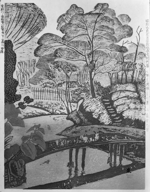 「昭和大東京百図絵」より 37.滝野川・金剛寺(紅葉寺)下の音無川幽邃