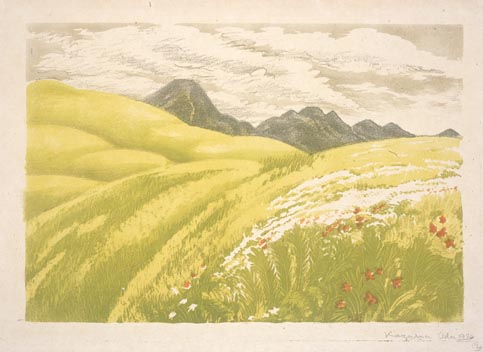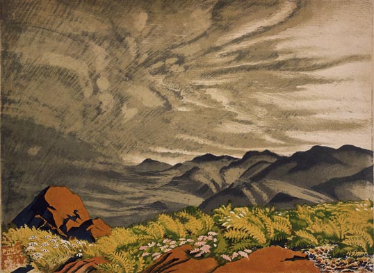 『日本名山画譜』より 5. 籠坂峠から 富士あざみ咲く富士山