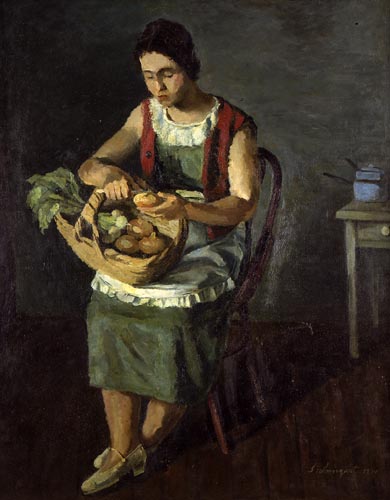 玉葱をむく女