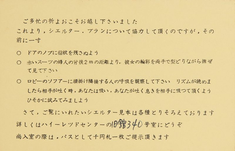 「シェルター計画」より 「シェルター計画担当 ハイレッド・センター」名刺