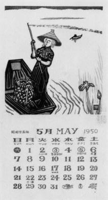 旭正秀自刻版画絵暦 五月 湖畔のあやめ
