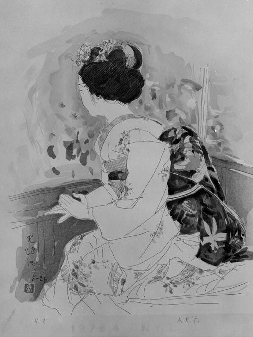 版画集『舞妓六撰』より 4. 秋窓(光津江)