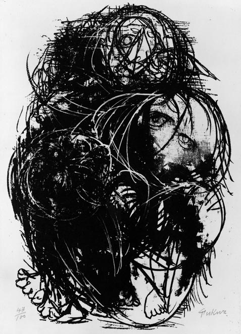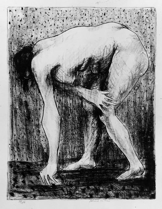 かがむ裸婦