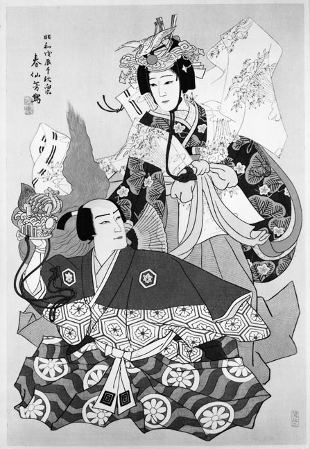 「春仙似顔集」より 二世市川松蔦・四世片岡我童(十二世仁左衛門) 梅川忠兵衛