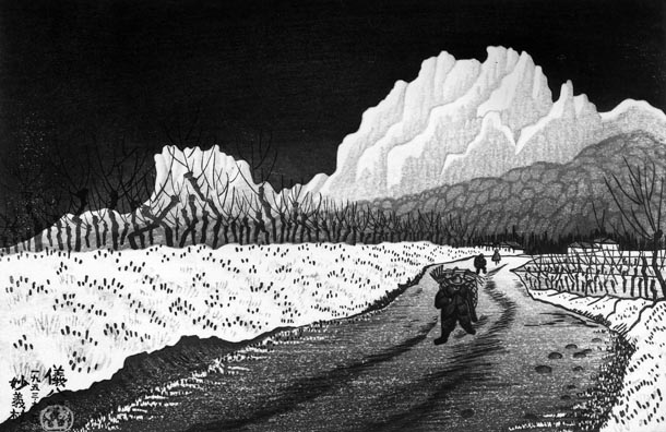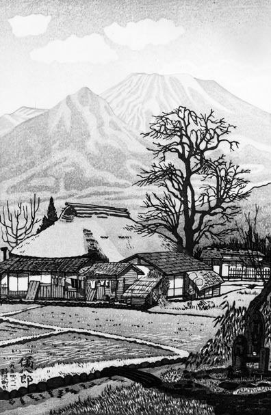 「日本風景版画」より 野沢町から 浅間山麓の農家