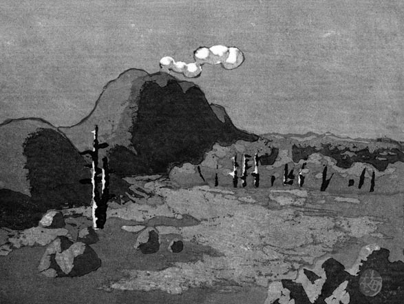 「日本風景版画」より 大沼公園から駒ヶ岳