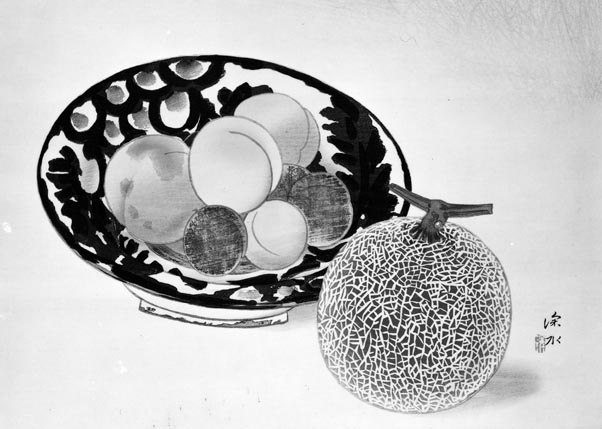 静物三題之内 メロンと水蜜桃