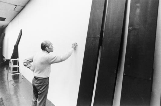 ヤニス・クネリス作品の展示作業(「人間と物質」展)