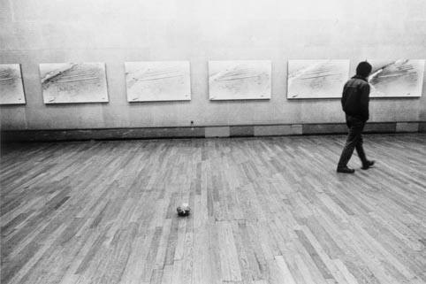 ヤニス・クネリス作品の展示作業(「人間と物質」展)