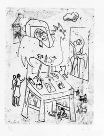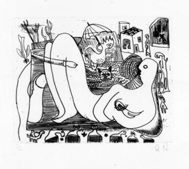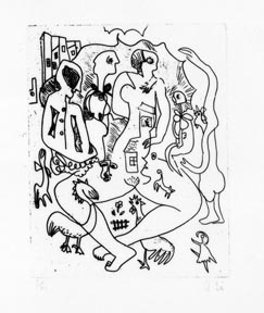 瑛九・銅版画 「SCALE IV」より 124.妻とおんどり