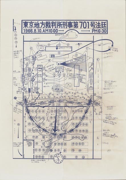 東京地方裁判所刑事第701号法廷(第1回公判の経過絵図)