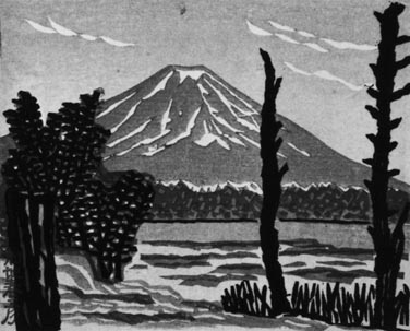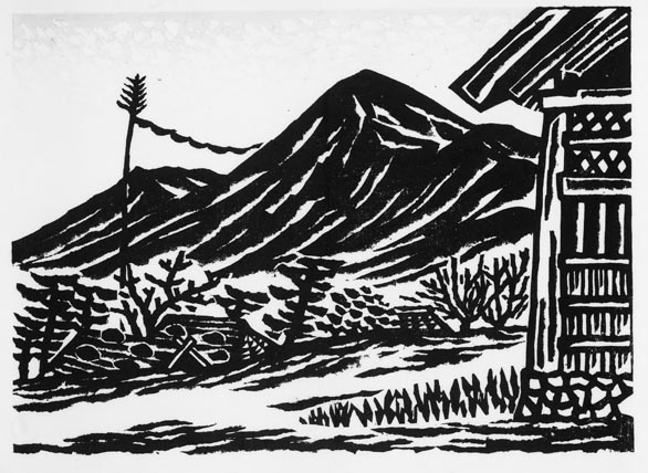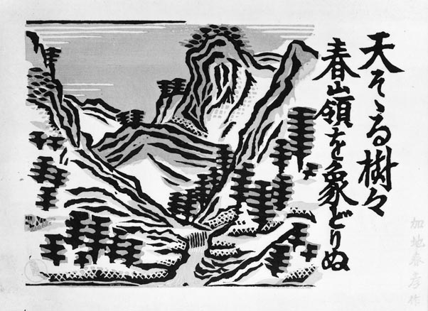 [山岳風景 天そそる樹々春嶺を象どりぬ]