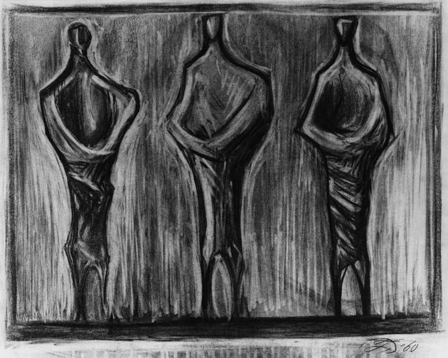 有機的形態と曲線定規の線のあいだの対位法的コンポジション