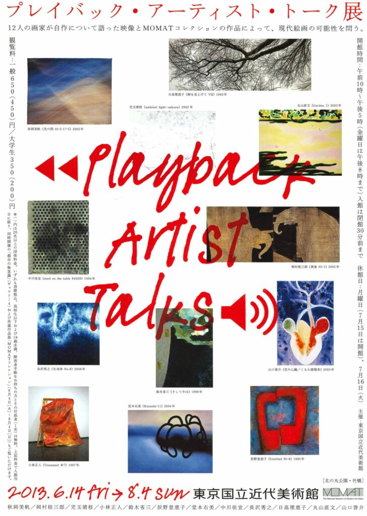 概要 当館では2005年以来、コレクション展に展示された作品の前で、活躍中のアーティスト本人に自作について語っていただく「アーティスト・トーク」を開催してきました。この催しはこれまでに30回を数えます。そもそも、現代の作品に接するための親しみやすい導入になることを期待して始められた催しでしたが、事実、それぞれのトークでは、作者のそれまでの歩みや、そのときに考えていたことなどがわかりやすく語られており、理解を深める上で貴重な機会となっています。そしてこれらのトークを収録した映像は、長い目で見れば歴史的証言にもなっていくに違いありません。 このたびの展示では、これまでのさまざまな分野のトークの中から、とくに絵画に焦点をあて、トークのダイジェスト映像と当館コレクションの作品約40点とをあわせてご紹介します。登場する画家たちはいずれも、1970年代末から80年代にかけて発表を始めていますが、それはまさに、ミニマル・アートやコンセプチュアル・アートといった、従来の美術のあり方を厳しく問い直そうとする動向の後を受けた、難しい時期に当たります。表現が極限まで切り詰められ、「見ること」「作ること」を根本から捉え直さなければならなかった状況から、彼らは絵画の豊かな可能性をどのようにして取り戻していったのか。そうした課題の追求の成果が、彼らのトークや作品から感じ取れることでしょう。 ここが見どころ そうか…そんなことを考えながら描いていたのか。 12人の画家が、自身の作品について、あるいは制作しながら考えていたことなどを、わかりやすく語ったトークの様子を、それぞれ15分程度にまとめた映像を展覧会場でご覧いただけます。作品と一緒に映像を見ることで、現代絵画がより身近に見えてくるはず。 トークの一部を書き起こした無料小冊子を配布 12人の画家のトークのハイライトを活字化。作品の図版もあわせて、文庫サイズの小冊子にまとめました。展覧会ご入場時におひとり一冊、無料でさしあげます。 同時代を見つめてきた批評家の言葉は? 展覧会会期中には関連イベントとして、今回取り上げた12人の画家たちの仕事を継続的に見てきた3人の美術批評家(天野一夫、谷新、建畠晢)の講演会を開催します。会場では作家の言葉を、そして講演会では批評家の言葉を聞くことで、現代絵画の課題が立体的に浮かび上がってくるでしょう。 YouTubeでプロモーションビデオ配信 12人の画家のトークから、それぞれ印象的な言葉を集めて、約4分のプロモーションビデオを作成しました。YouTubeでご覧いただけます。気になる言葉に出会ったら、続きはぜひ会場でじっくりと。 作家紹介 秋岡美帆 Akioka Miho 1952年神戸市生まれ。79年大阪教育大学大学院修了。82年に最初の個展(信濃橋画廊、大阪)。88年日本国際美術展で東京国立近代美術館賞受賞。90年「シガアニュアル90 写真による現代版画」(滋賀県立近代美術館)などに出品。94-95年、文化庁派遣芸術家在外研修員としてフランス、アメリカに滞在。2002年三重県立美術館で個展。現在大阪教育大学教授。 https://www.youtube.com/watch?v=f1r1LyEc2P0 岡村桂三郎 Okamura Keizaburo 1958年東京都生まれ。88年東京藝術大学大学院後期博士課程満期退学。84年から93年まで創画展に出品するが、その後は個展、グループ展を発表の場とし、93年「ART IN JAPANESQUE」(O美術館)、93年「現代絵画の一断面 『日本画』を越えて」(東京都美術館)、98年「『日本画』純粋と越境」(練馬区立美術館)などに出品するほか、2008年に神奈川県立近代美術館(鎌倉)で個展を開催。現在多摩美術大学教授。 https://www.youtube.com/watch?v=EOZ4NgyADw4 児玉靖枝 Kodama Yasue 1961年神戸市生まれ。86年京都市立芸術大学大学院修了。同年最初の個展(アートスペース虹、京都)。95年「視ることのアレゴリー」(セゾン美術館)、2002年「未来予想図」(兵庫県立美術館)、2010年「プライマリー・フィールド2」(神奈川県立近代美術館・葉山)などに出品。現在宝塚大学教授。 https://www.youtube.com/watch?v=W07HV6yOp0I 小林正人 Kobayashi Masato 1957年東京都生まれ。84年東京藝術大学卒業。85年に最初の個展(鎌倉画廊、東京)。89年「色彩とモノクローム」(東京国立近代美術館)、94年VOCA展(上野の森美術館/奨励賞)、95年「絵画、唯一なるもの」(東京国立近代美術館)、96年サンパウロ・ビエンナーレなどに出品。97年から2006年までベルギーのゲントで制作。2000年宮城県美術館、01年ゲント市立現代美術館、09年高梁市成羽美術館で個展。現在東京藝術大学准教授。 https://www.youtube.com/watch?v=I9HJbs6r_D0 鈴木省三 Suzuki Shozo 1946年大阪府生まれ。69年同志社大学卒業。70年フォルム洋画研究所にて研修。78年に最初の個展(藍画廊、東京)。89年「色彩とモノクローム」(東京国立近代美術館)、91年「今日の作家展」(横浜市民ギャラリー)、2001年インド・トリエンナーレ、同年「色の博物誌・緑」(目黒区美術館)、05年「絵画の行方―現代美術の美しさって何?」(府中市美術館)などに出品。 https://www.