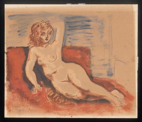 寝椅子に寄った裸婦